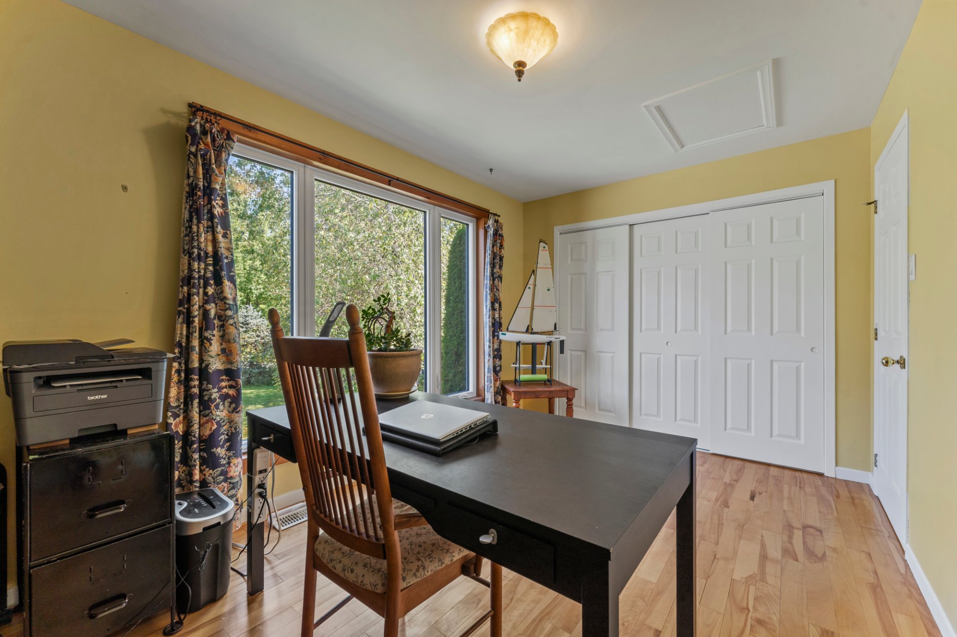 Exclus : Miroir de la salle de bain du rez-de-chaussée, meubles de la chambre principale (5), secrétaire en face de la porte d'entrée, une bibliothèque et le bureau de la pièce bureau, chaise de bureau, effets personnels du VENDEUR, outils du cabanon et du sous-sol (négociables).