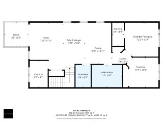 | Chambre à coucher principale | 12.2 x 12.4 P | 3ième étage | Plancher flottant |